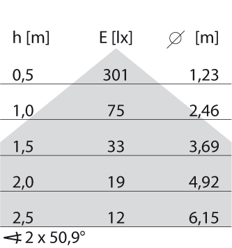 - Nom. levensduur L70/B50 bij 25 °C: 60000 h