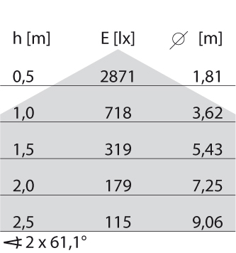 • Specifieke lichtstroom armatuur: 64,5 - 64,5 lm/W