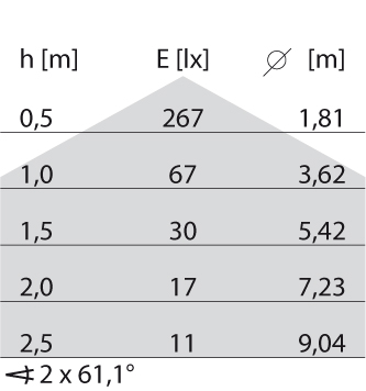- Lichtverdeling: Symmetrisch