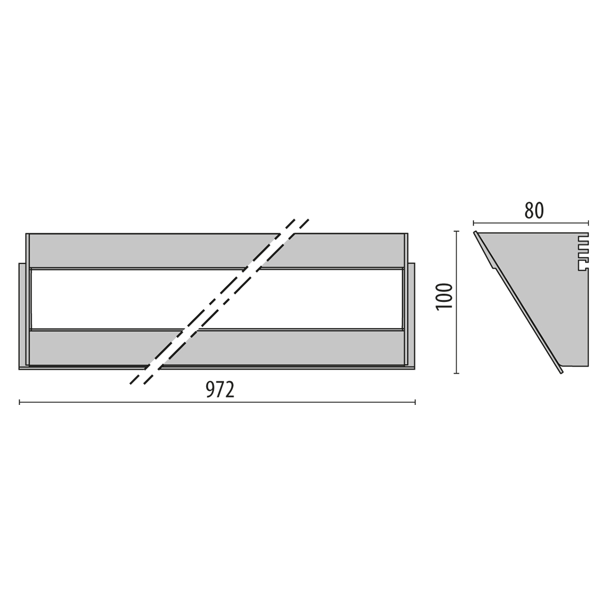 - Hoogte/diepte: 100 mm