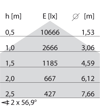 - Lichtverdeling: Symmetrisch