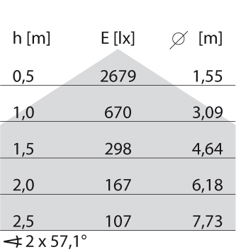 - Lichtverdeling: Symmetrisch