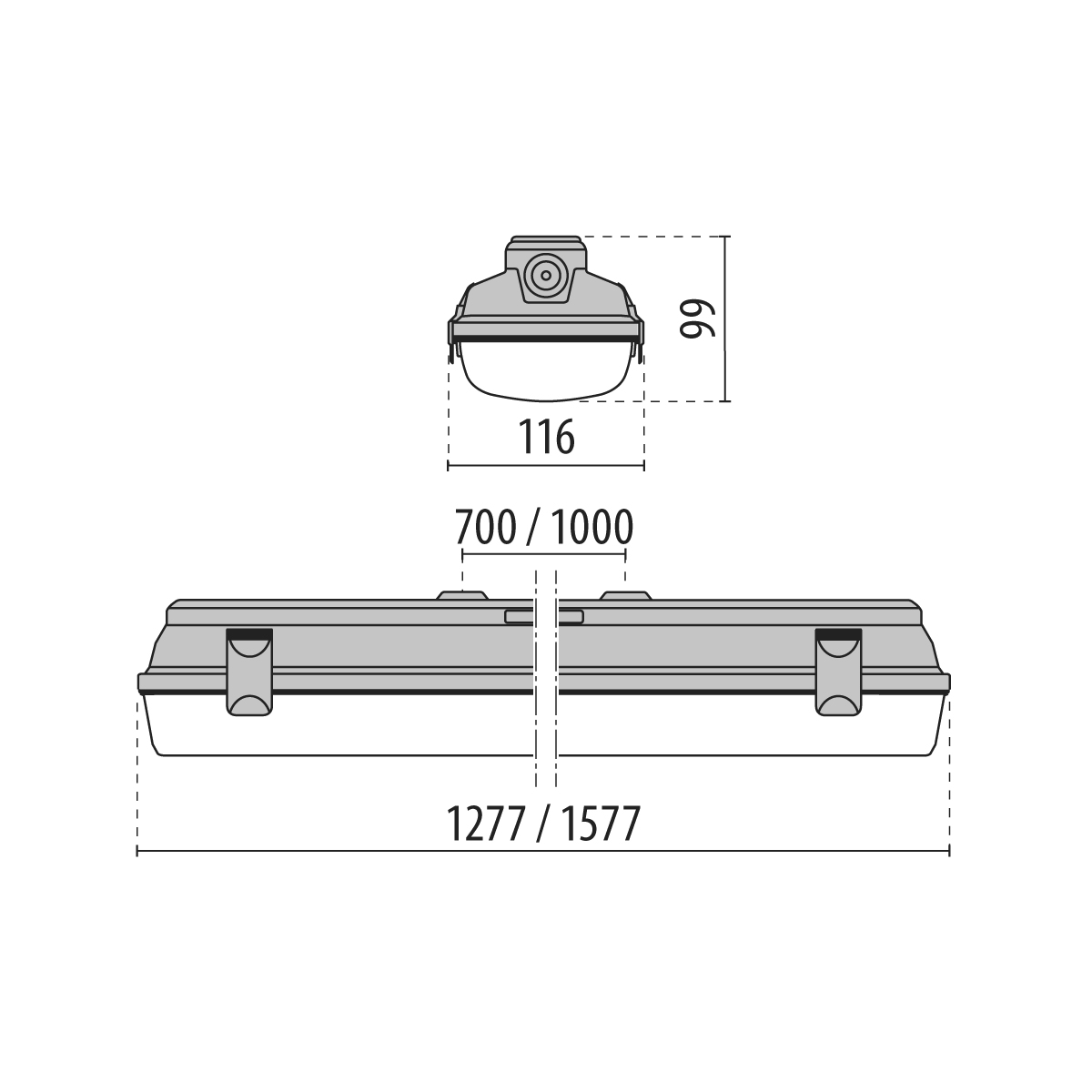- Lichtopbrengst bij noodbedrijf: 220 lm