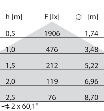- Lichtverdeling: Symmetrisch