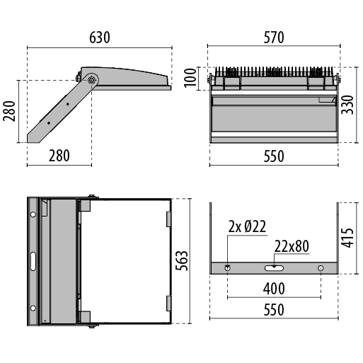 LED-Schijnwerpers 3000K 428W dimbaar 1-10V asymm. verspreide Performance in Lighting