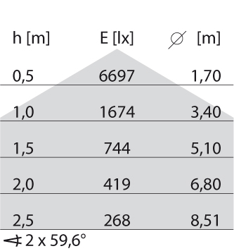 - Lichtverdeling: Symmetrisch