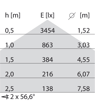 - Lichtverdeling: Symmetrisch