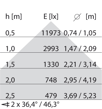 - Lichtverdeling: Symmetrisch