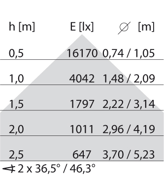 • Lumenbehoud bij gemiddelde levensduur van 75.000 uur bij 25 °C omgeving (tq): 55 %