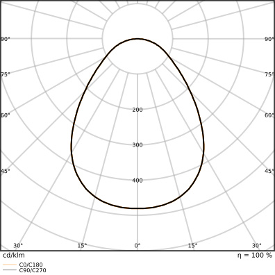 - Specifieke lichtstroom armatuur: 100 - 100 lm/W