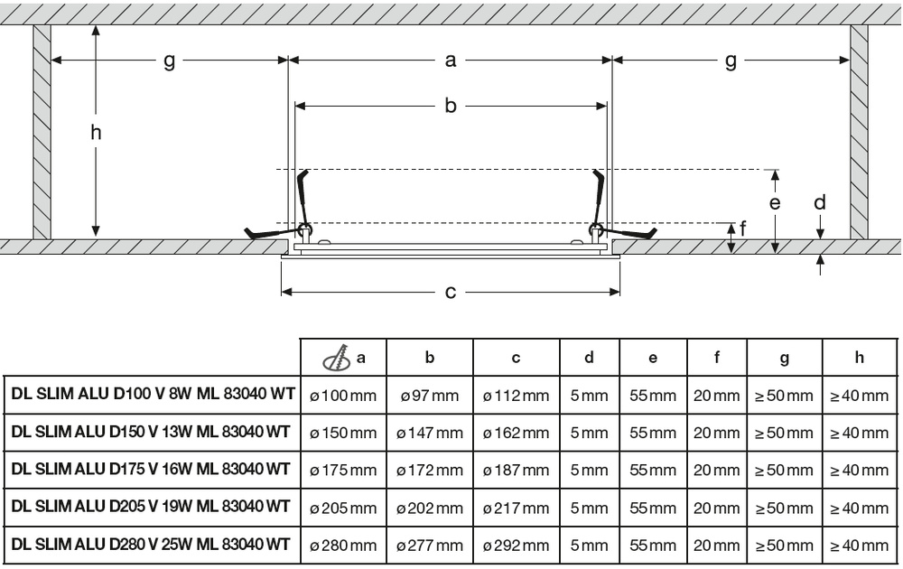 - Type: DL SLIM ALU D175 V 16W ML 83040 WT