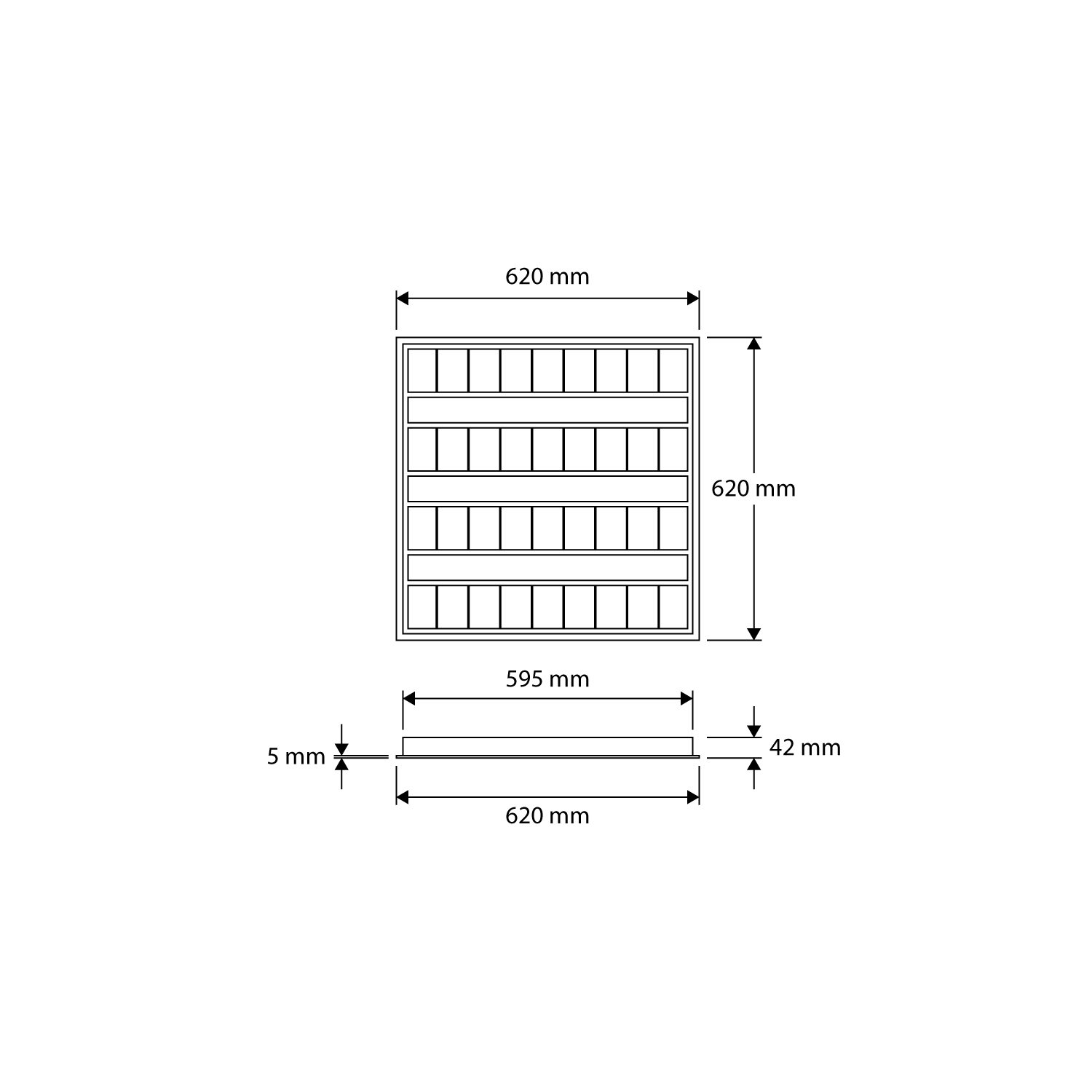 - Inbouwhoogte/diepte: 42 mm