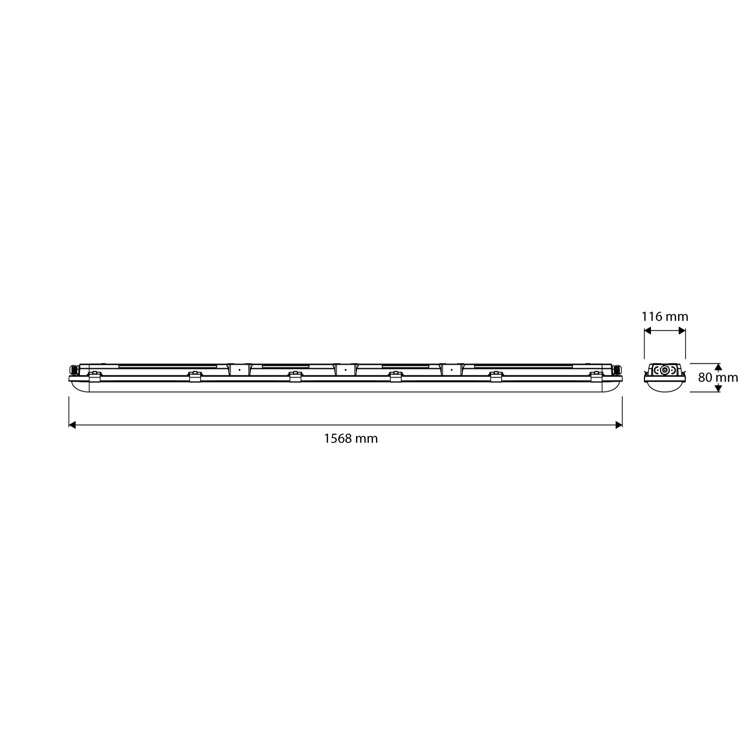 Led-armatuur waterdicht Pro-Aqua IV (IP66), 1568mm max.51,5W, max.9300lm, aan/uit Prolumia
