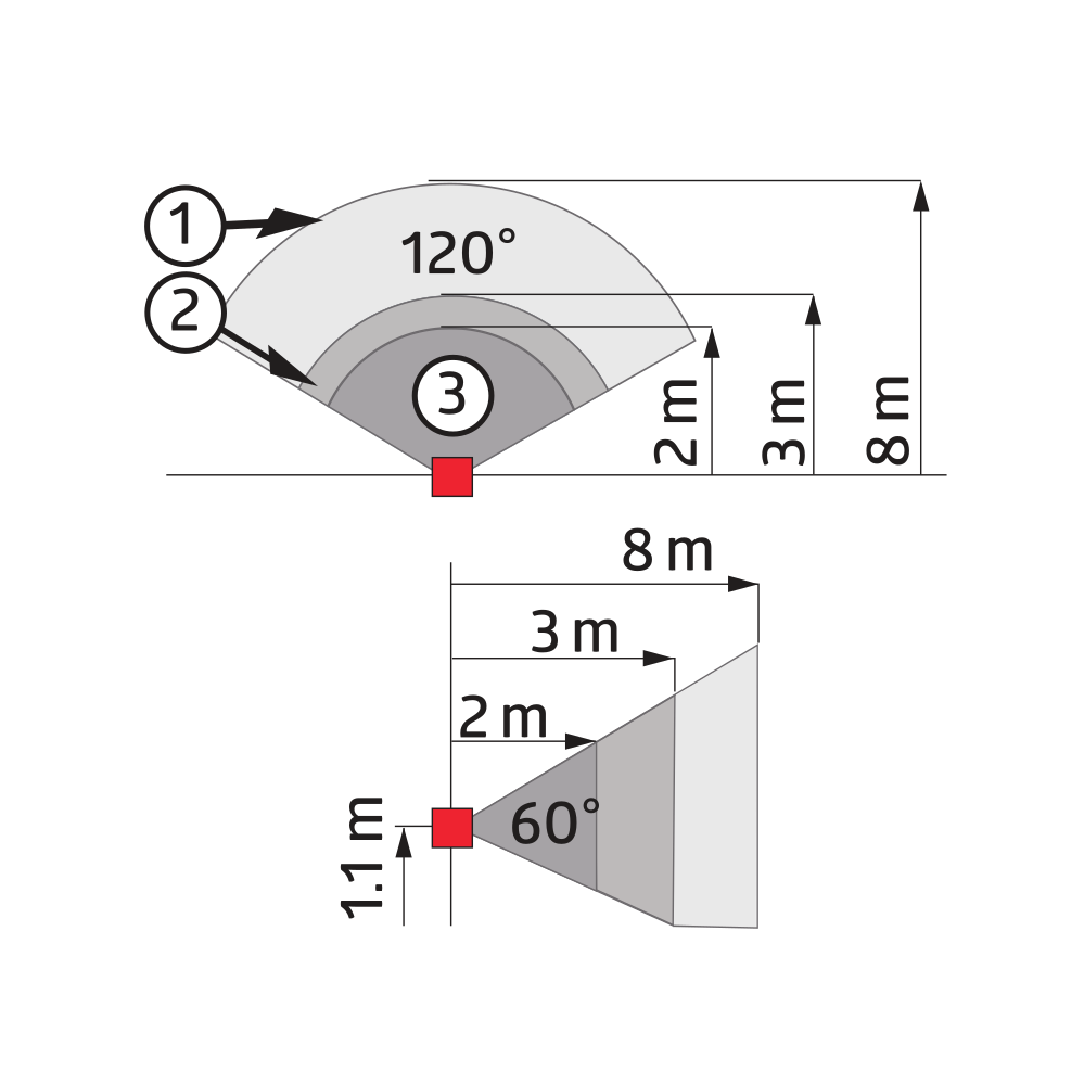 - Hoek reikwijdte horizontaal: 0 - 120 °